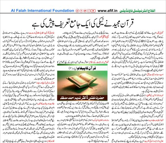 قرآن مجید نے نیکی کی ایک جامع تعریف پیش کی ہے
