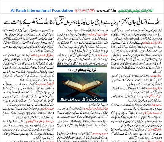 اللہ نے انسانی جان کو محترم بنایا ہے، اپنی جان لینا یا دوسروں کو قتل کرنا اللہ کے غضب کا باعث ہے