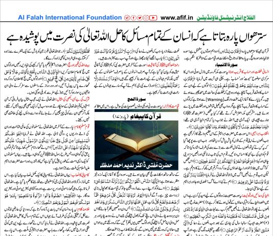 سترھواں پارہ بتاتا ہے کہ انسان کے تمام مسائل کا حل اللہ تعالیٰ کی نصرت میں پوشیدہ ہے