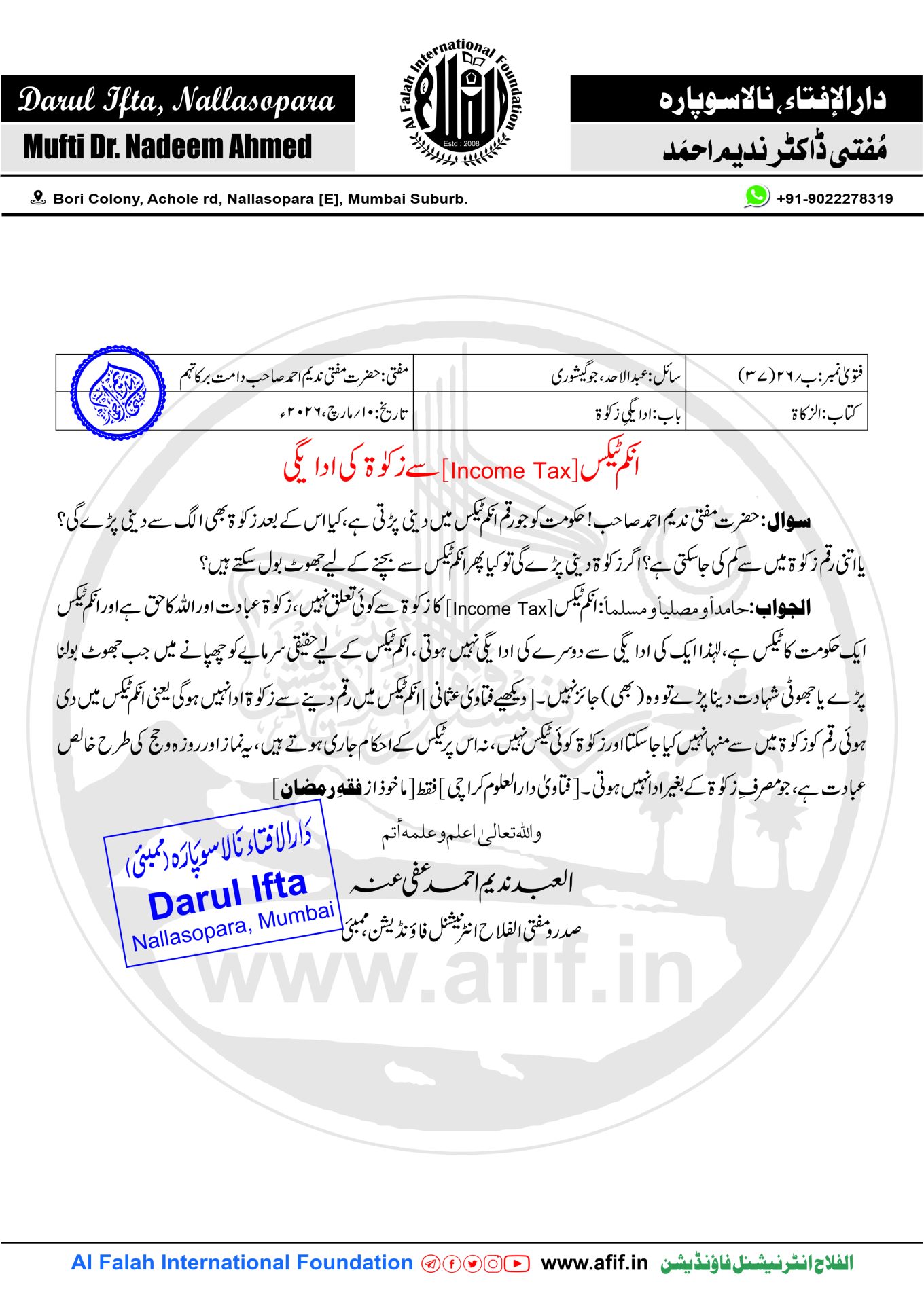صدرو مفتی الفلاح انٹرنیشنل فاؤنڈیشن، ممبئی