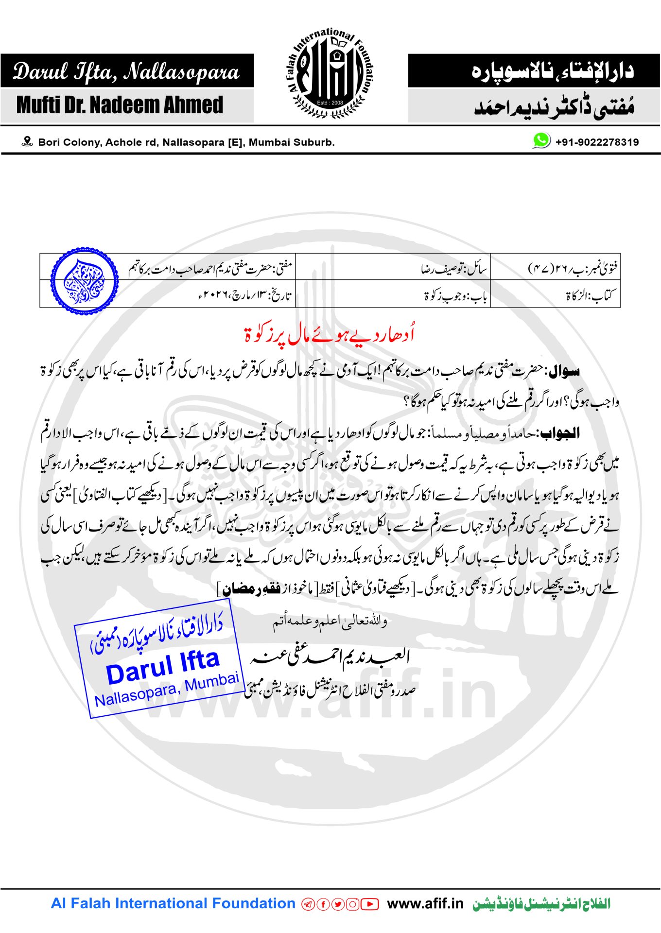 صدرو مفتی الفلاح انٹرنیشنل فاؤنڈیشن، ممبئی