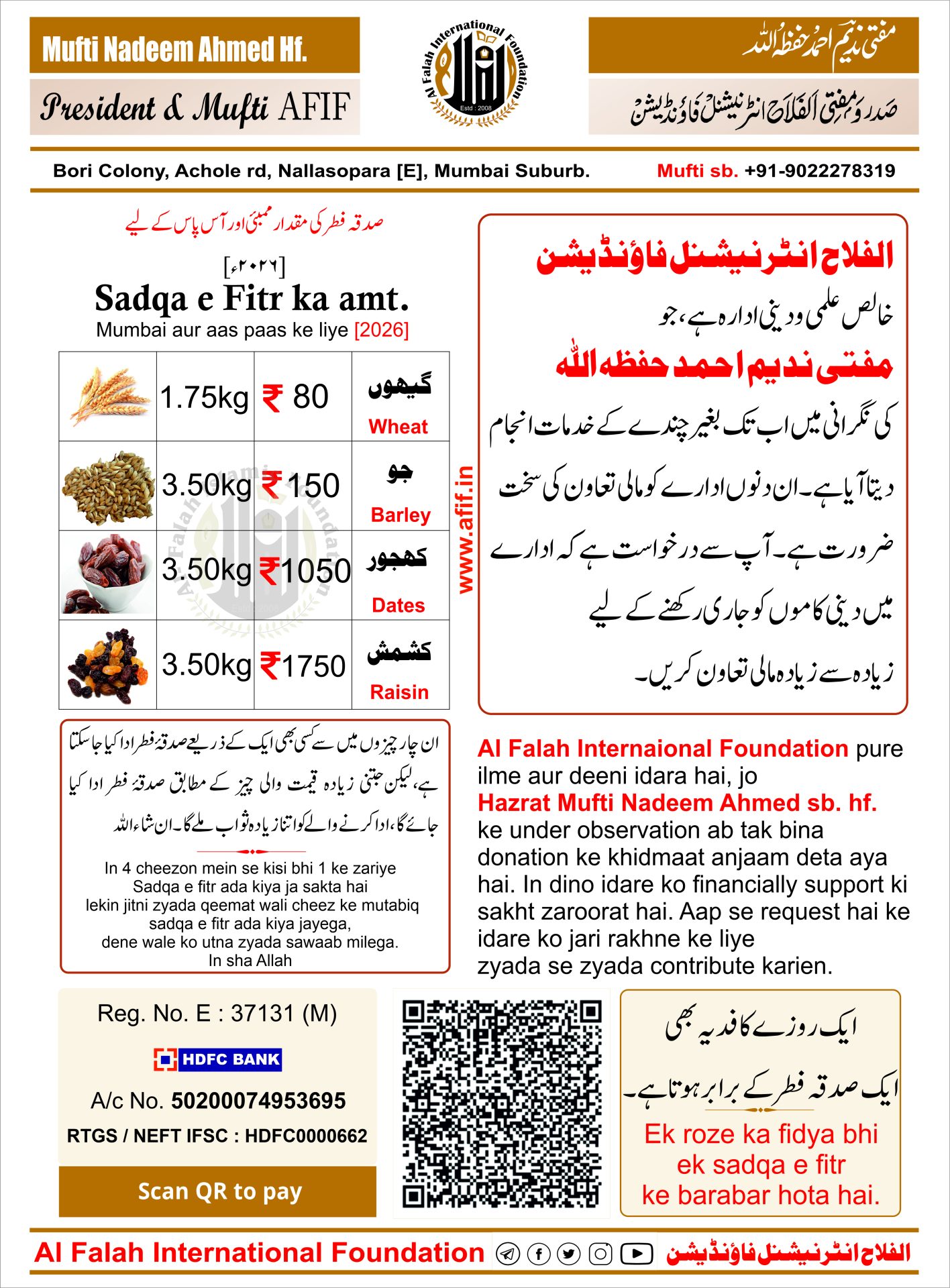 صدقۂ فطر ممبئی ۲۰۲۶ء