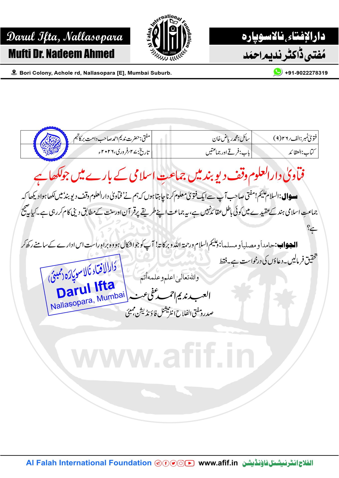 فتاویٰ دارالعلوم وقف دیوبند میں جماعتِ اسلامی کے بارے میں جو لکھا ہے