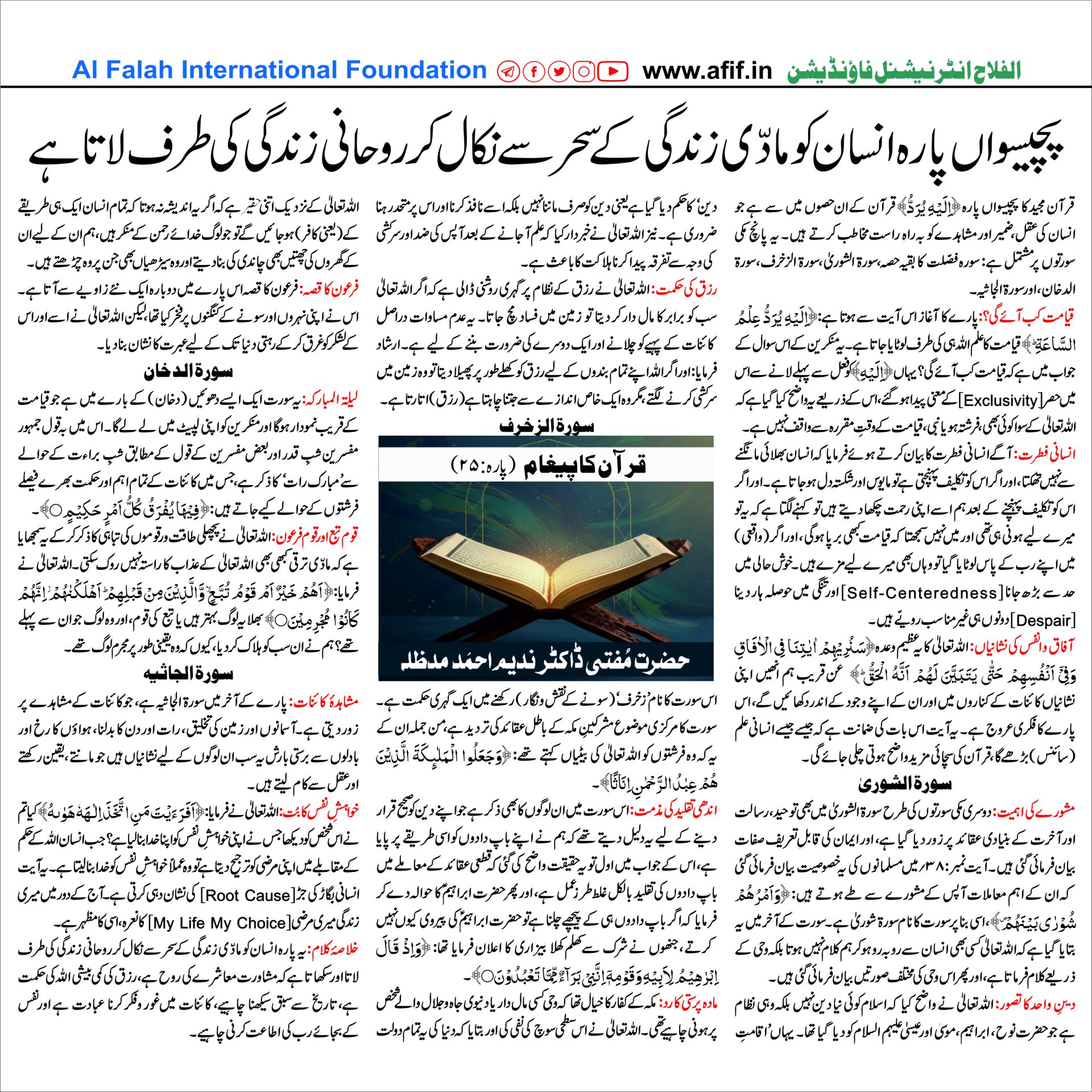 Home Dept of Islamic Studies Articles پچیسواں پارہ انسان کو مادّی زندگی کے سحر سے نکال کر روحانی...