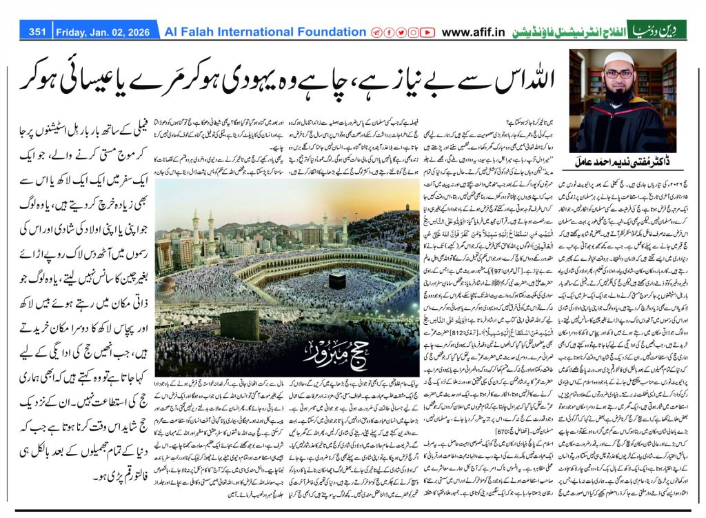 [کالم نگار الفلاح انٹرنیشنل فاؤنڈیشن کے صدر و مفتی ہیں]