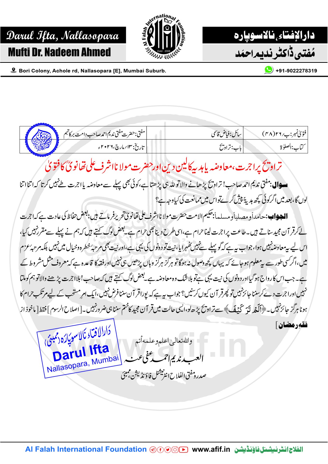 صدرو مفتی الفلاح انٹرنیشنل فاؤنڈیشن، ممبئی