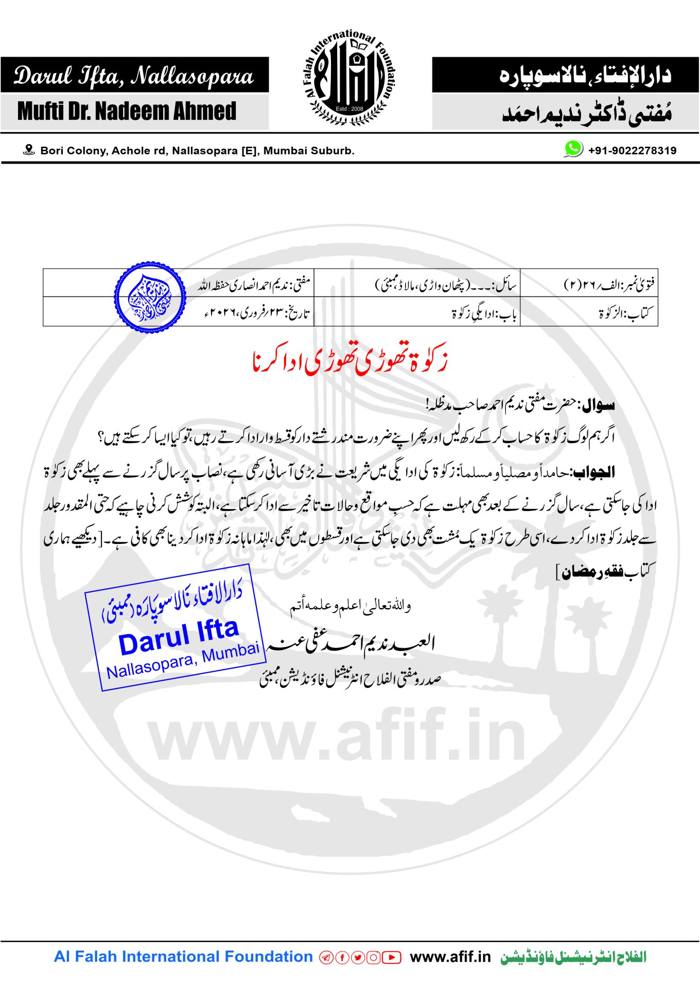 صدرو مفتی الفلاح انٹرنیشنل فاؤنڈیشن، ممبئی