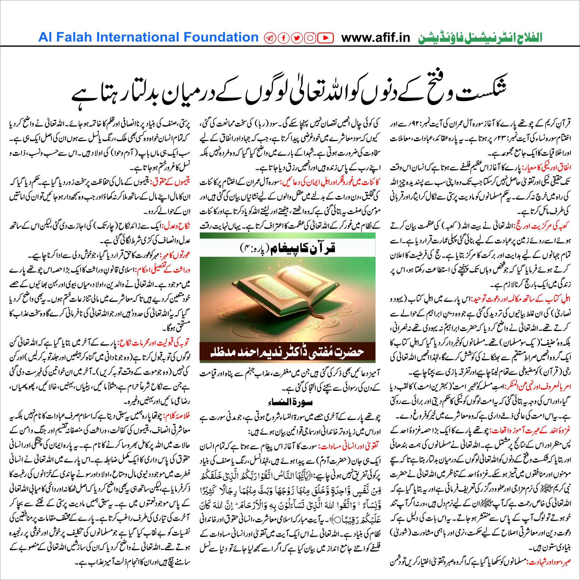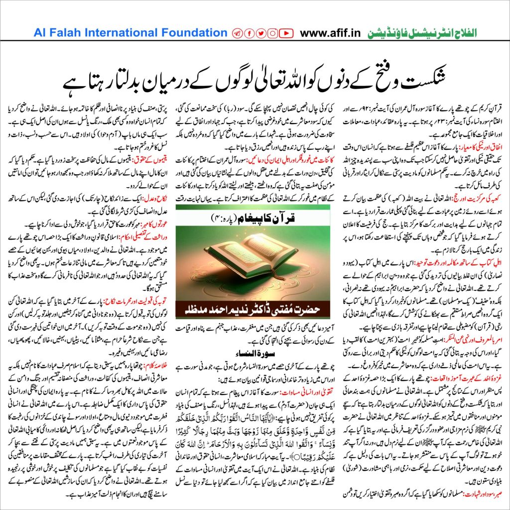 قرآن کا پیغام (پارہ:۴)