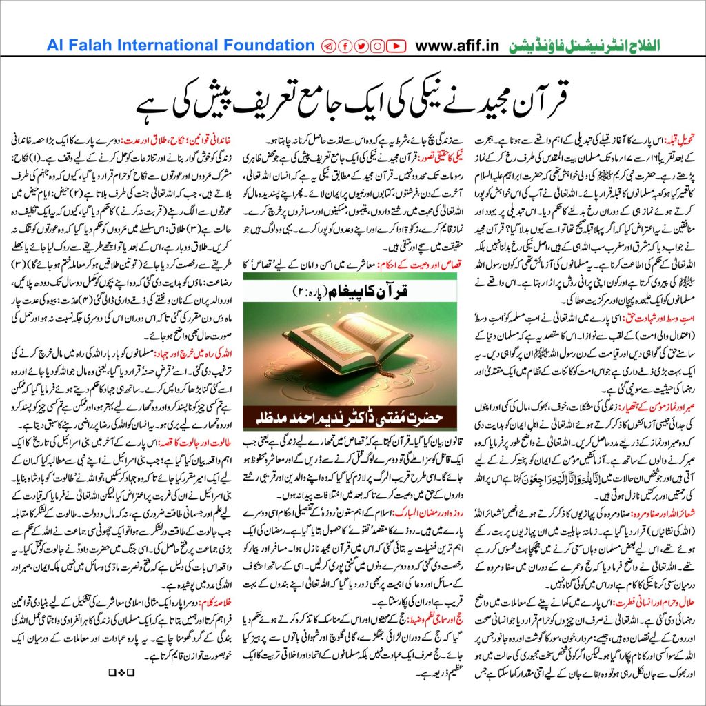 قرآن مجید نے نیکی کی ایک جامع تعریف پیش کی ہے