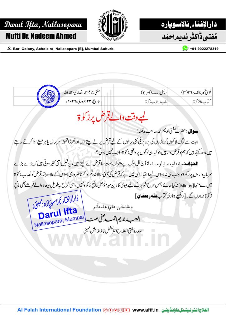 Home Darul Ifta لمبے وقت والے قرض پر زکوٰۃ