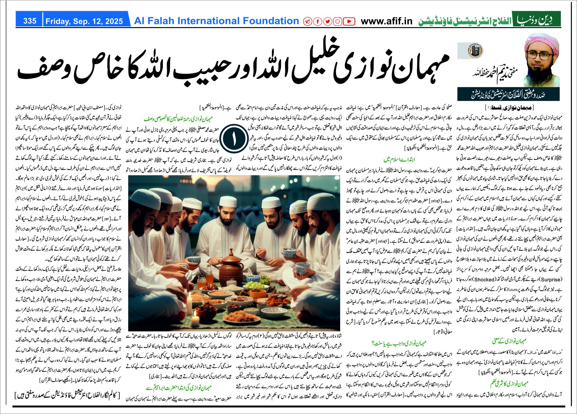 مہمان نوازی رحمۃ للعالمین کا خصوصی وصف