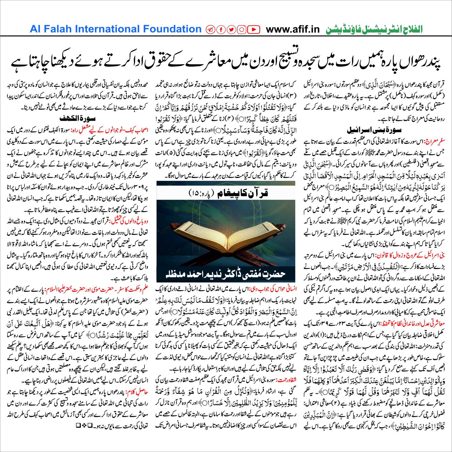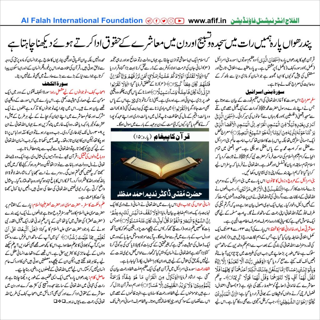قرآن کا پیغام (پارہ:۱۵)