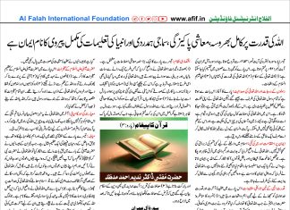 اللہ کی قدرت پر کامل بھروسہ ، معاشی پاکیزگی، سماجی ہمدردی...