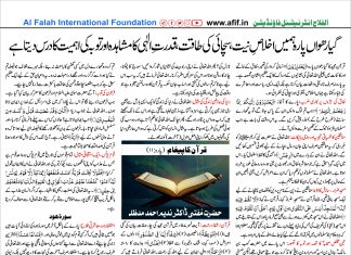 گیارھواں پارہ ہمیںاخلاصِ نیت ،سچائی کی طاقت،قدرتِ الٰہی کا مشاہدہ اور...